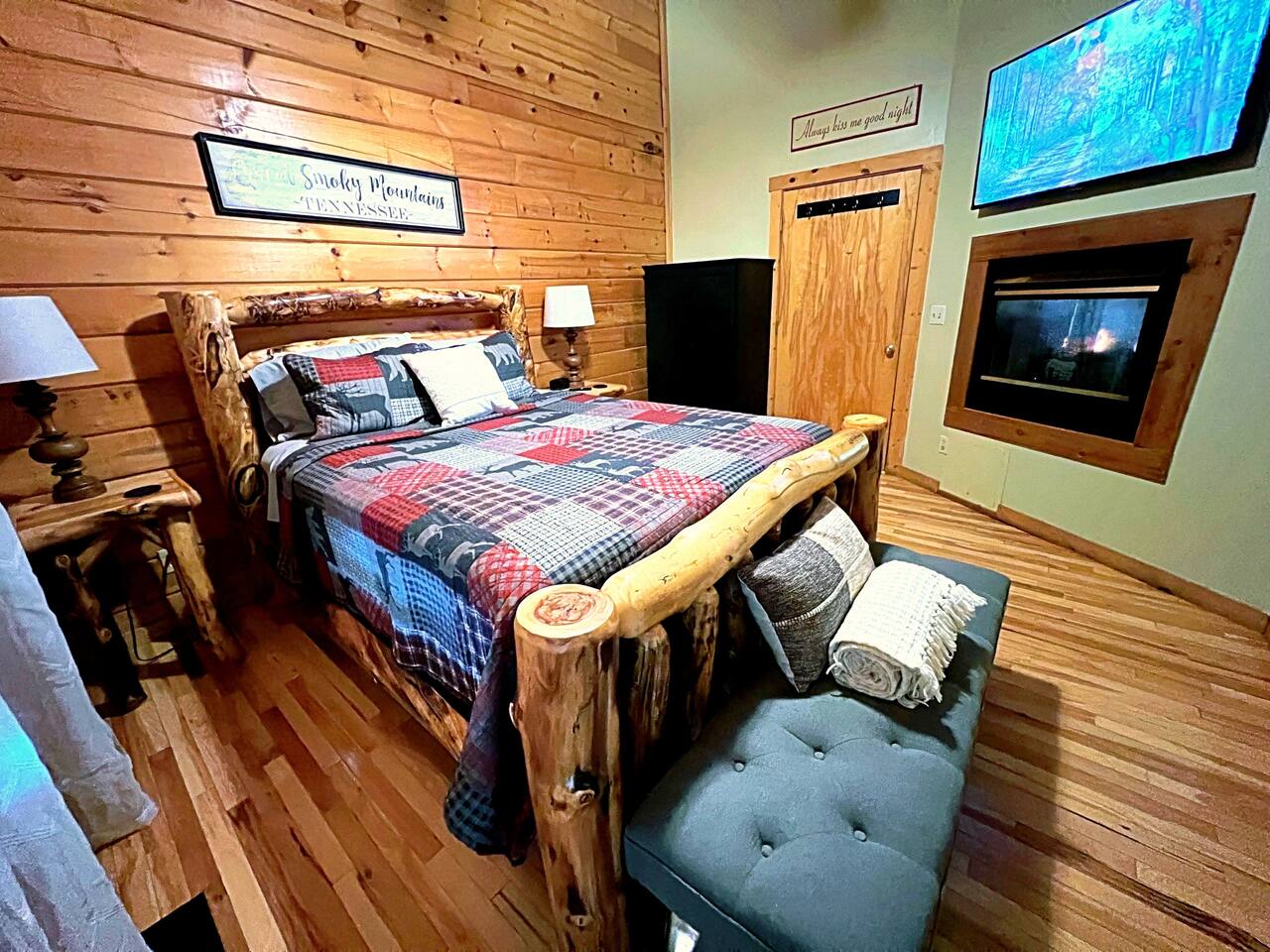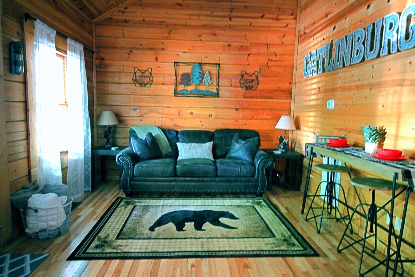 A private cabin less than 10 MIN to Downtown GAT & PF. 1 Bedroom + 1 Bath, Sleeps 4. Enhance your romantic, solo, or family getaway to the Smoky Mountains area here! Indoor couple Jacuzzi, and a very private back deck. The private covered deck is nestled in the trees with a relaxing, soothing private hot tub. Snuggle Bear is a "Cozy Cabin" that is a great place for newlyweds, couples, friends, solo adventurists, and small families looking to escape the grind! Great cabin for recharging!
