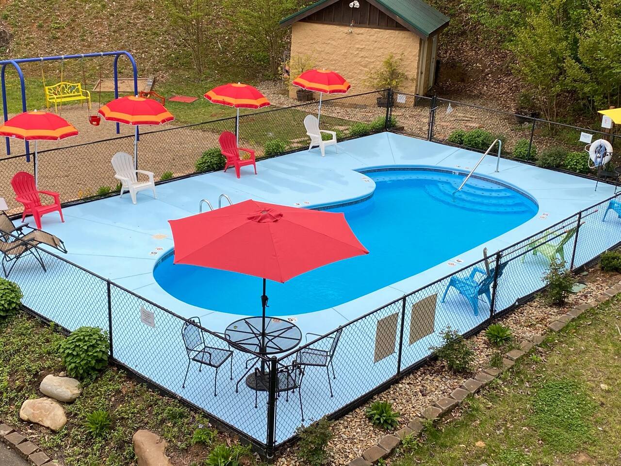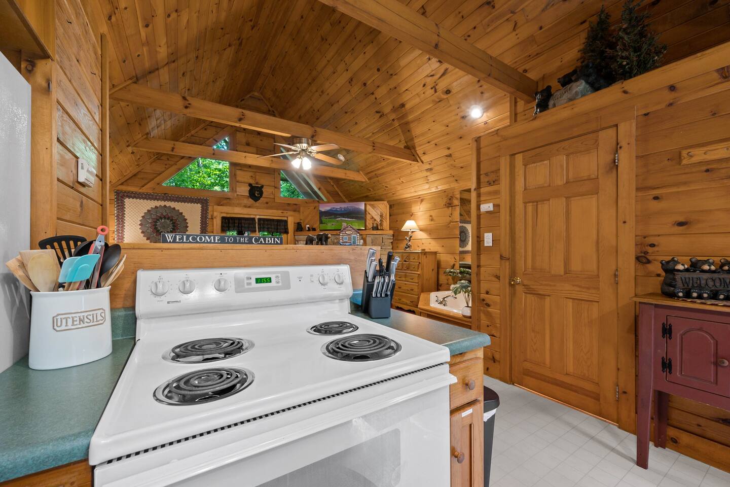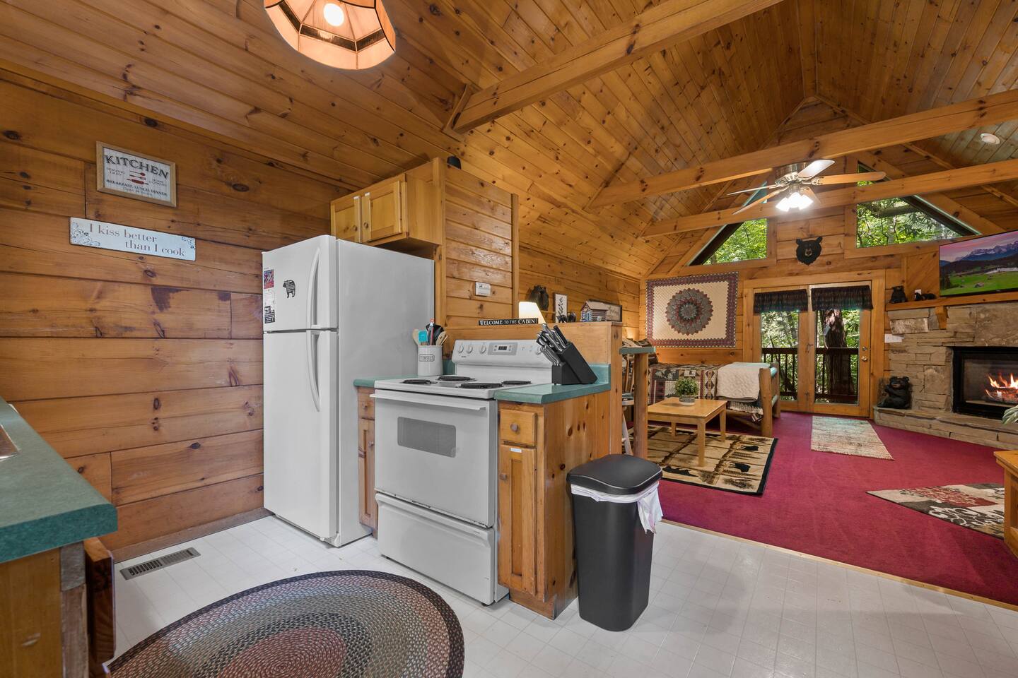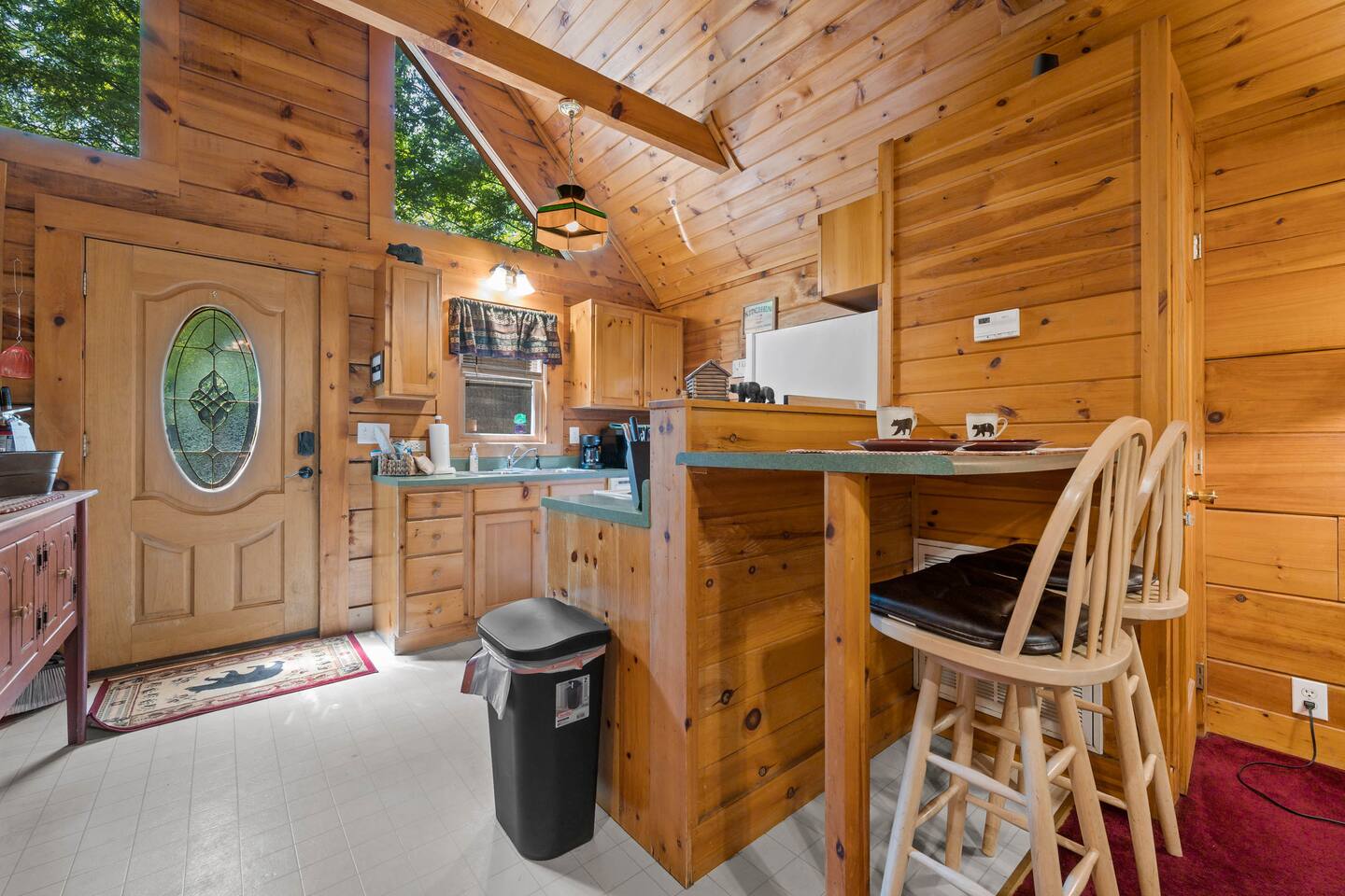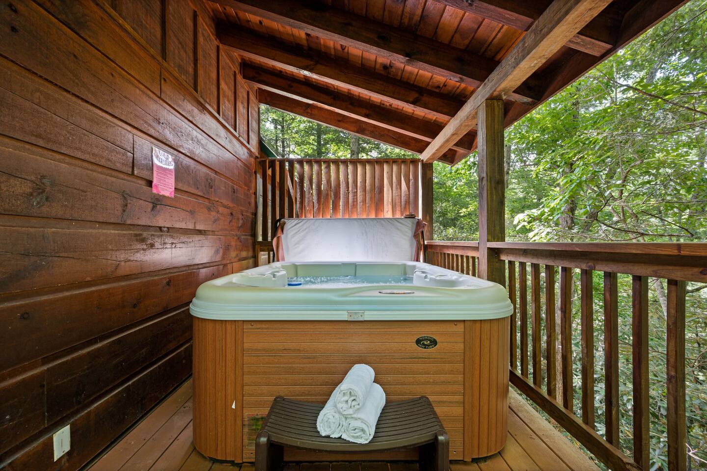 The cabin is a studio cabin. Its best feature is the wrap-around back deck. It is nestled high, within the lush trees, offering a private intimate experience. Excellent for relaxing and unwinding. Here, you won't hear your neighbors - you will hear the calming nature of the Smoky Mountains.