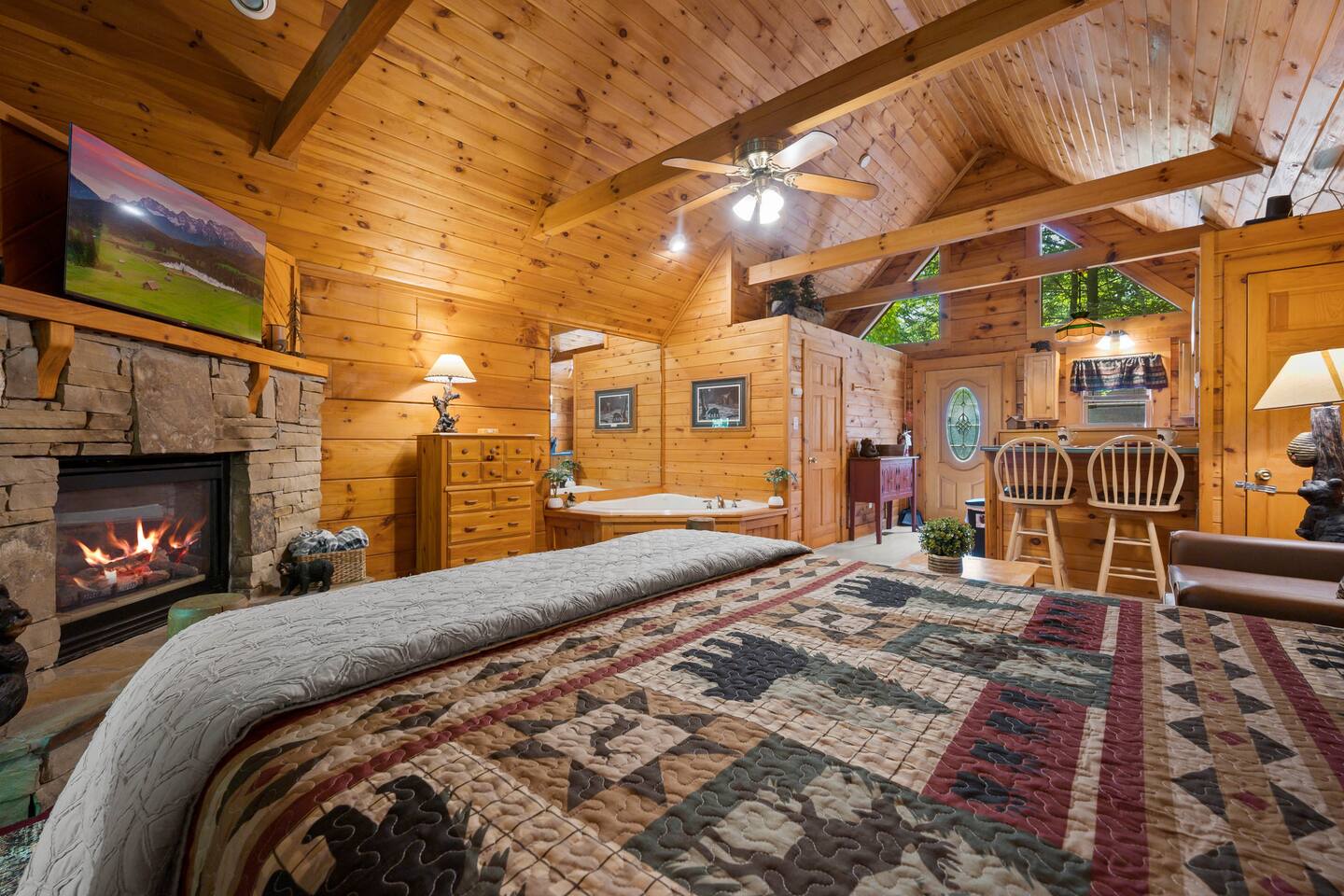 Studio Cabin in the Arts & Crafts area. 1Bath, Sleeps 2. Less than 10 MIN to Downtown GAT & PF. Enhance your romantic or solo getaway to the Smoky Mountains area while staying with us. Indoor couple jacuzzi, and a very private, wrap-around covered deck nestled in the trees with a relaxing, soothing private hot tub. Heavenly Host is a "Honeymoon Cabin" that is a great place for newlyweds, couples, friends, and solo adventurists looking to escape the grind! Great cabin for recharging!