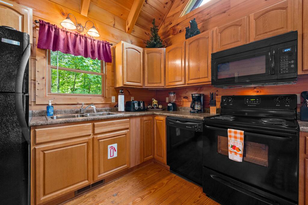For those looking for relaxation to enjoy the scenery, the covered three-sided wraparound deck offers two wooden rockers, a wooden swing, a gas grill, and a hot tub. A separate game room downstairs with its own outside entrance offers a Pool Table, Games, Smart TV, Futon, Recliner, and Bistro Table along with a covered private balcony. This romantic log cabin is accented with a stone gas fireplace, fully stocked kitchen, washer & dryer, Smart TVs, Jacuzzi, large private yard area, and all the luxuries for your home away from home. Mountain Lake Hideaway is perfect for couples, double dates, families, honeymoons, anniversaries, or romantic weekend getaways in the Smoky Mountains.